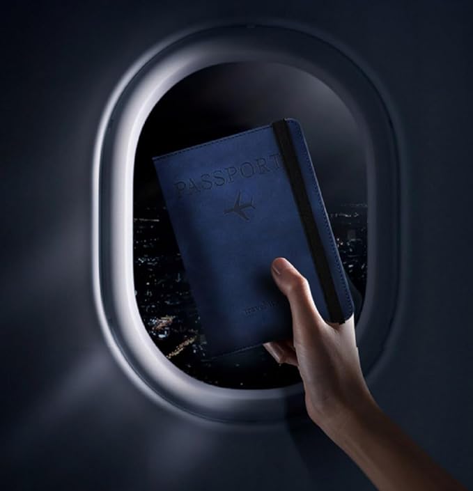 • MATERIAL: High Quality Material: PU leather exterior and interior. Passport fits snugly into the pocketwith elastic string, providing a comfortable touch feeling and protection from dust and abrasions.